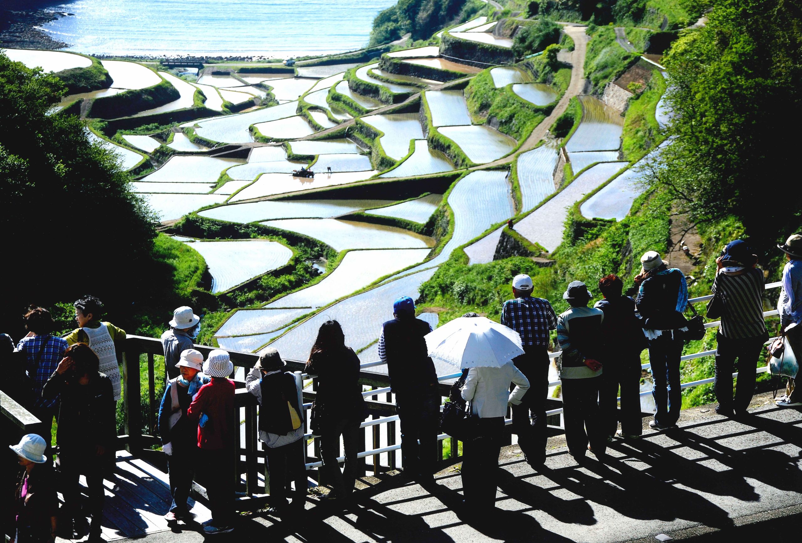 「棚田に見入る」