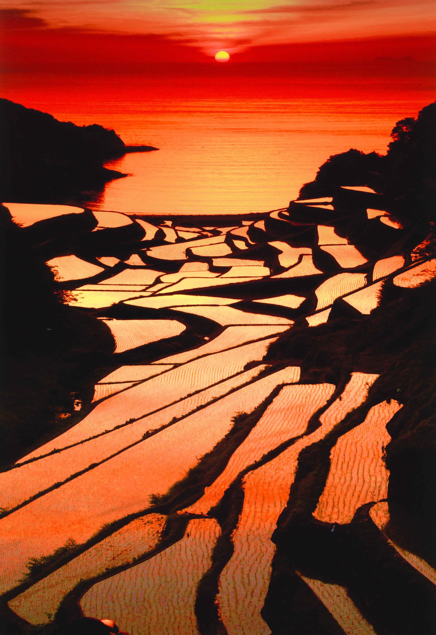 「棚田の夕陽」
