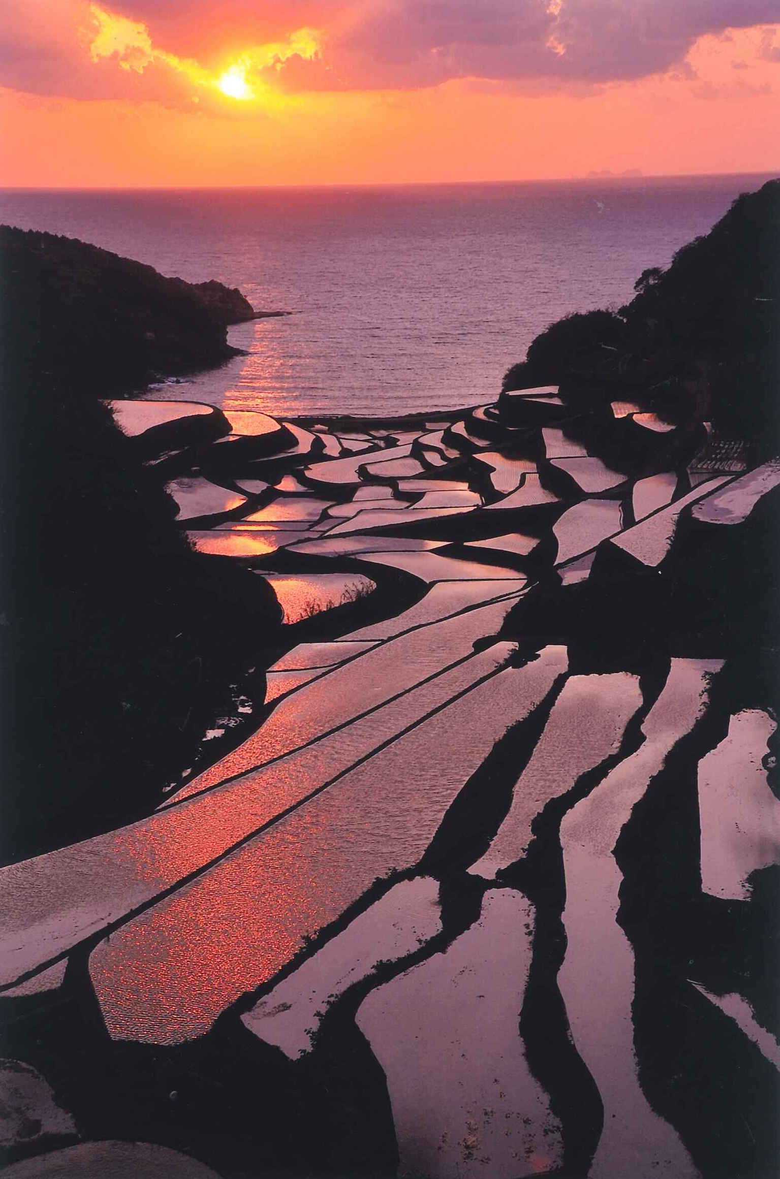 「落日の棚田」